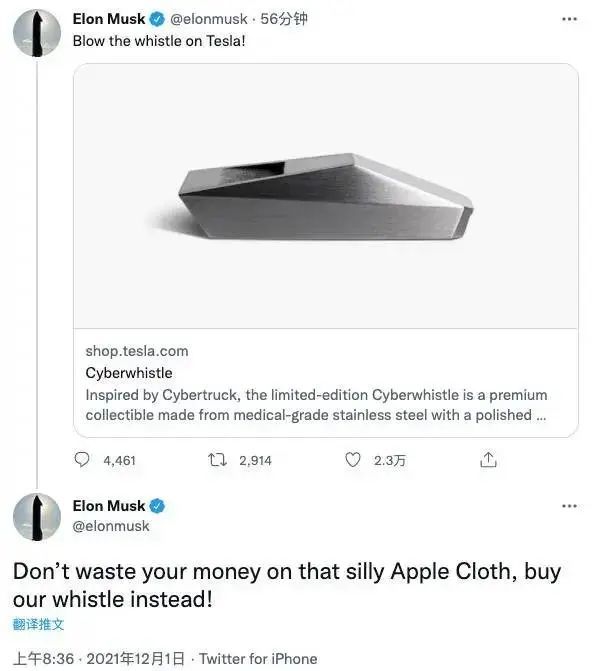 还记得苹果同年推出的 145 元抛光布吗?虽然第一眼看上去可能都有点「智商税」的异曲同工之感,但马斯克还炮轰苹果: