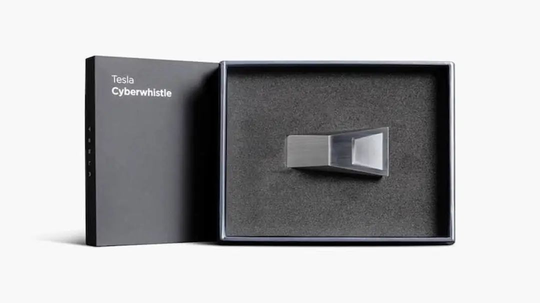 最近一次是去年,马斯克发布的一个限量版赛博卡车造型哨子。