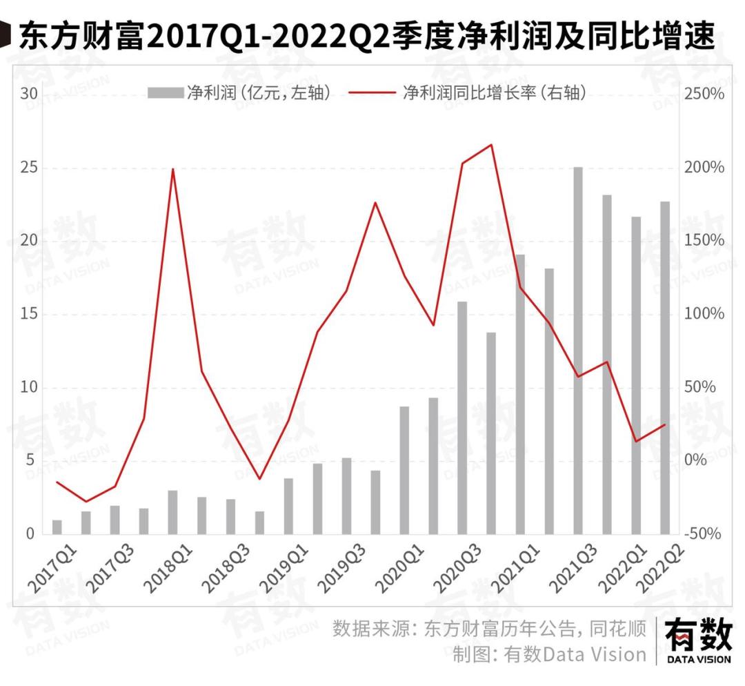 但随着股市交易量持续走低,东方财富净利润自2020年Q4开始同比增速开始持续下滑。