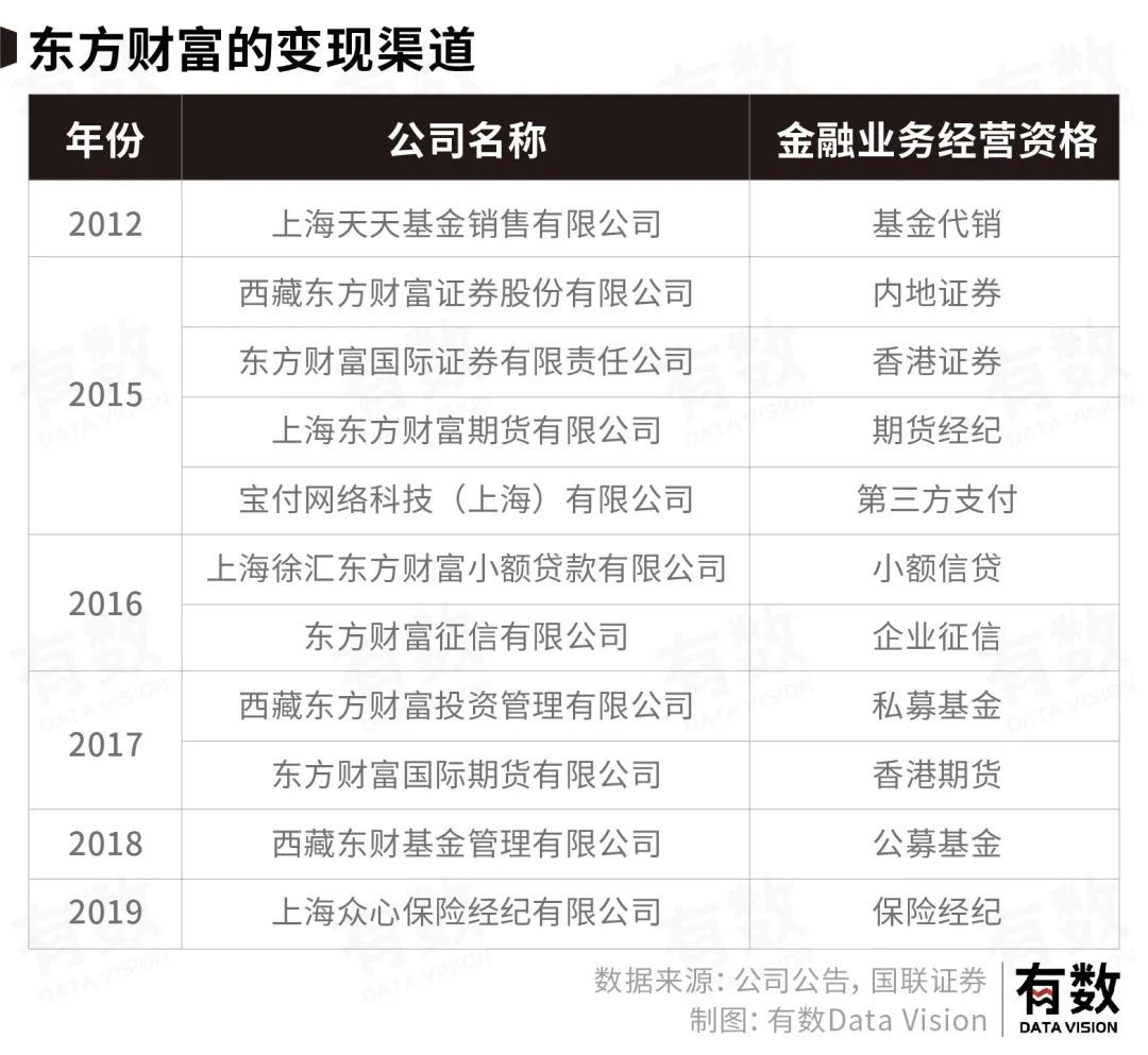 自此,东方财富一条腿,迈入了离钱最近的券商行业,而另一条腿还在用互联网模式源源不断的供应流量。