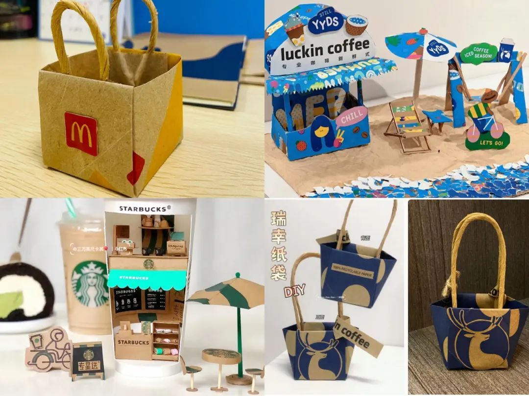 各显神通的手工二创大神越来越多,官方也迅速跟进趋势,和网友玩在一起。如瑞幸就在官号上多次分享纸袋改造教程,鼓励用户一起把纸袋玩出水平,玩出风采。