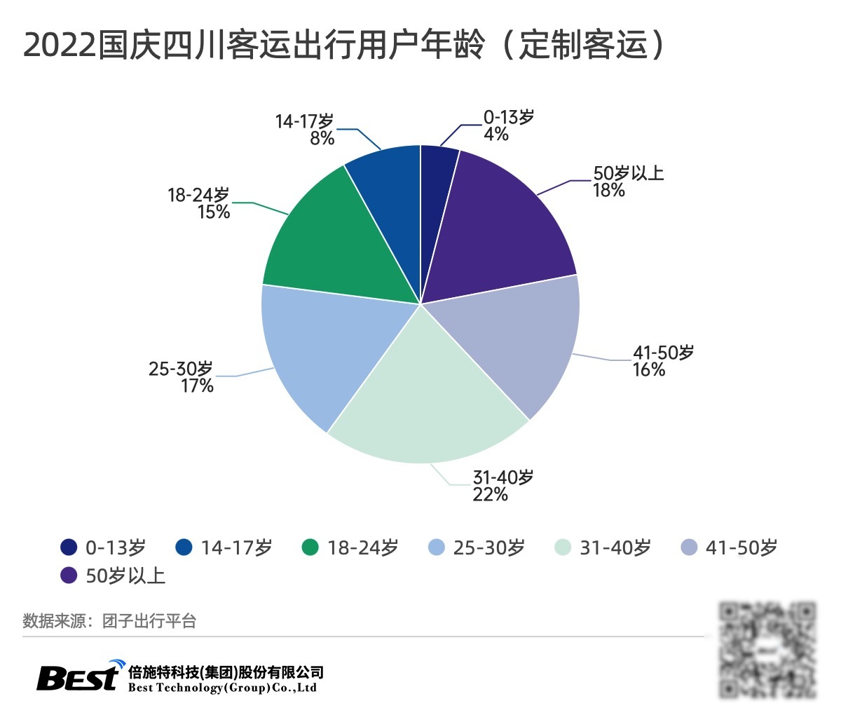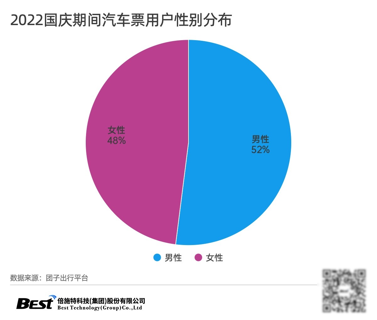 在定制客运用户画像上看,相较于汽车票出行,男女占比趋同,但定制客运用户在年龄上更为成熟,其中30岁以上用户占比为56%,这部分用户在出行体验和服务便捷性上要求更高。