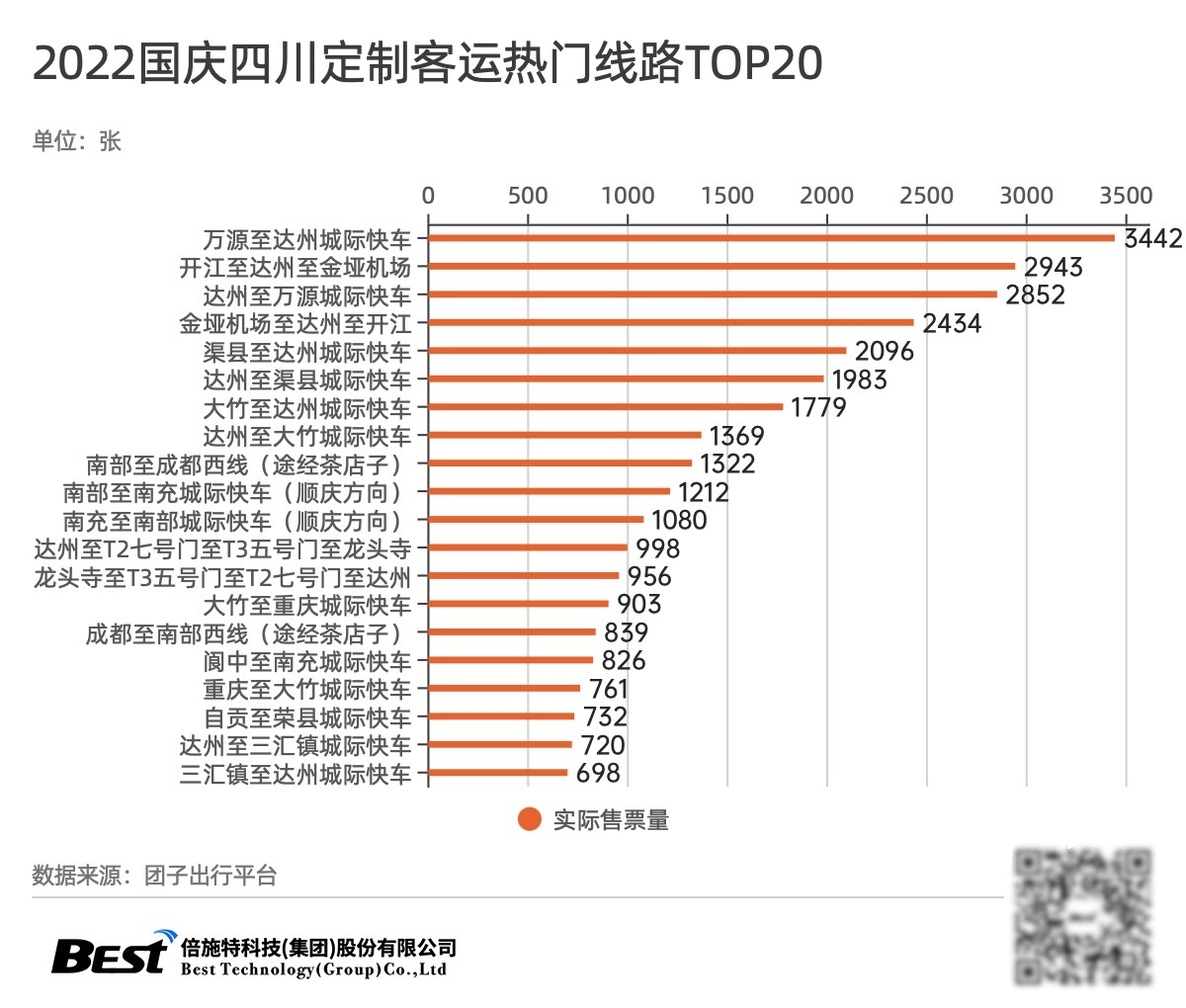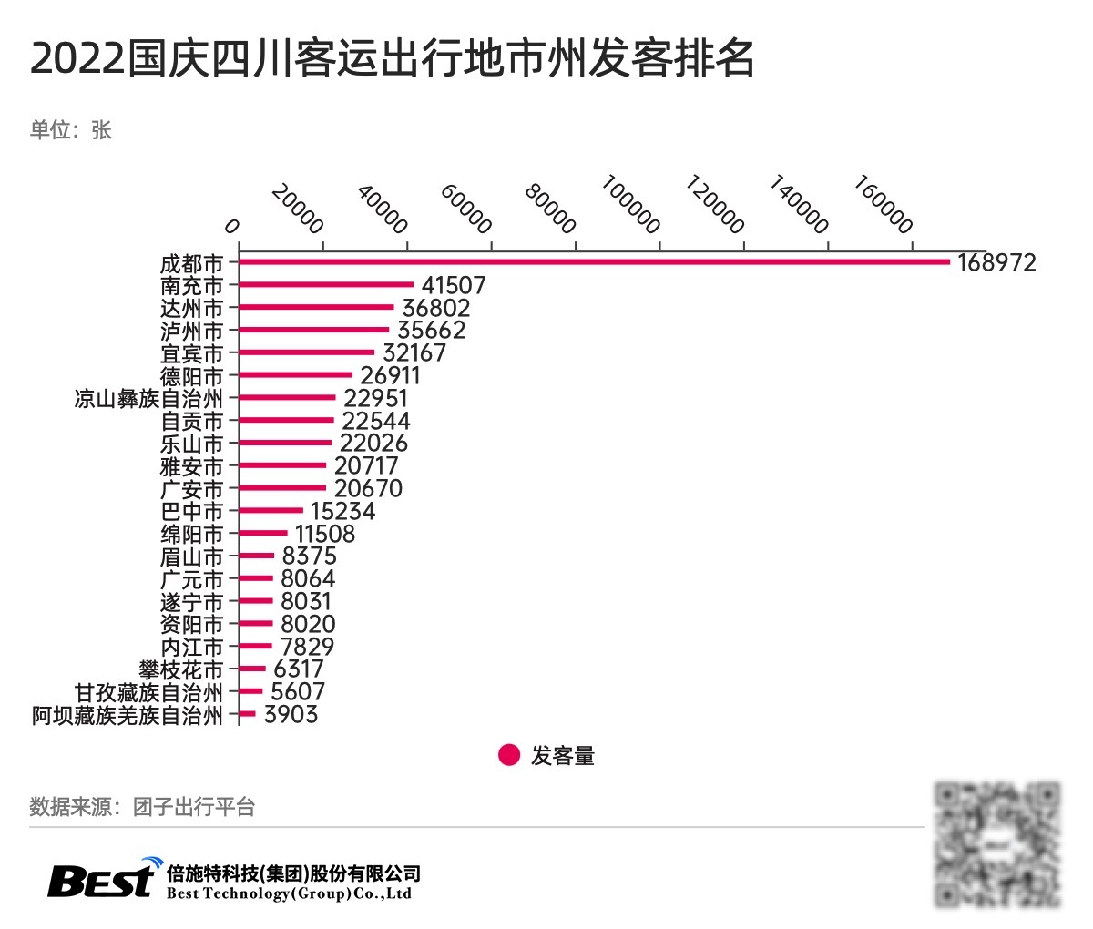 国庆长假期间,热门客源地依然是省会成都,排在TOP5的热门客源城市还有南充、达州、泸州和宜宾,均售出超过3万车票。