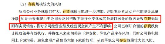 在半年报中,该公司也提到,“存货无法顺利实现销售,将对公司经营业绩及经营现金流产生不利影响”。