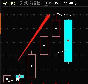 2019年至2021年,韦尔股份年线走出三连阳,股价涨幅超9倍。