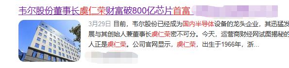 在高光时刻,韦尔股份成为A股第二家突破千亿市值的芯片公司,实控人虞仁荣一跃成为国内半导体行业首富。