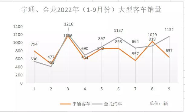 近日,宇通客车和金龙汽车都公布了2022年9月份的客车销售数据。36氪河南跟踪发现,大型客车市场头把交椅可能要易主了。宇通客车9月份的大型客车销量再次被金龙汽车超越,前9个月的大型客车总销量也落后金龙汽车。