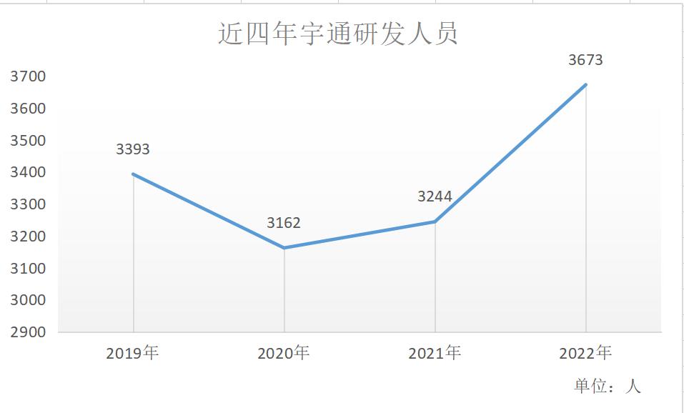 今年上半年,虽然宇通客车被不断地曝出裁员的相关消息,但其研发人员数量却并未减少,在今年上半年达到近四年的最大值:3673人,占全部人员的比重为25.18%,其中博士33人,硕士634人。而金龙汽车的研发人员只有宇通客车的一半。