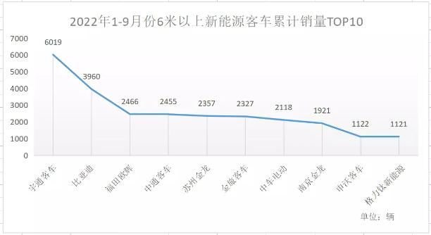 再看今年前9个月的数据,宇通客车总体累计销售18959辆,金龙汽车总体累计销售29341辆,宇通客车低于金龙汽车。