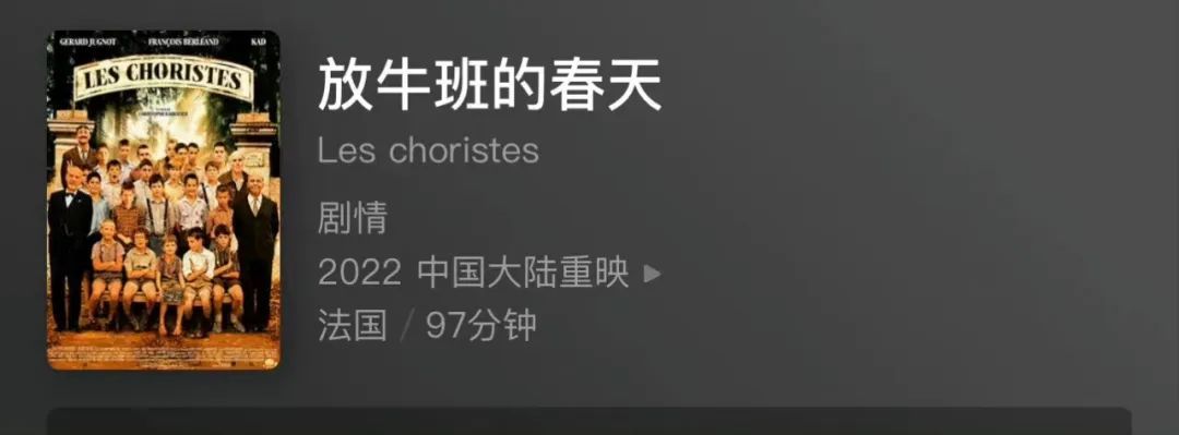 而因一则流传出来不知真假的《放牛班的春天》发行通知,也预示了该片有可能会获得重映的机会。作为一部经典影片,《放牛班的春天》曾是不少中国观众的青春回忆,此次如能重映仍具备一定的市场吸引力。