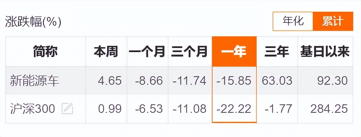 从新能源车指数上看,近一年来的涨跌情况为-15.85%,略跑赢沪深300。