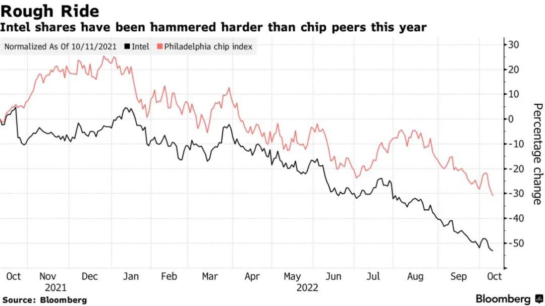 英特尔正面临着个人电脑处理器需求的急剧下降,这是它的主要业务,并且一直在努力赢回失去给AMD等竞争对手的市场份额。7月,该公司警告说,2022年的销售额将比之前的预期低约110亿美元。