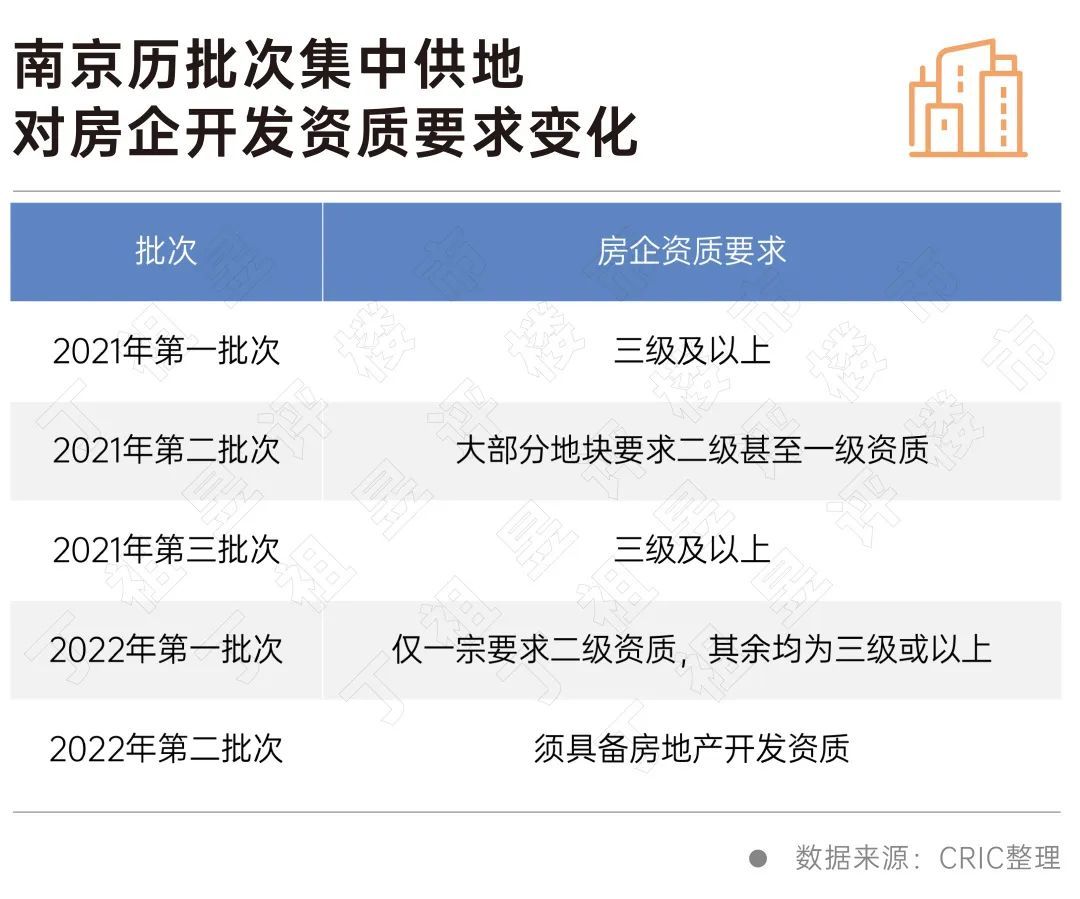 以南京为例。2020年下半年,南京对参拍房企的资质提出了一定的要求,至2021年第一批次集中供地时期,南京出让地块对房企资质的要求多在三级及以上。受首批次集中土拍高热影响,第二批次中部分地块要求房企须有二级甚至一级资质,对房企参拍资质要求明显提升。随后,二批次供地显著遇冷,多宗土地遭遇提前撤牌,为了保证土地成交,南京在2021年第三批次中将这一要求放宽至三级及以上。