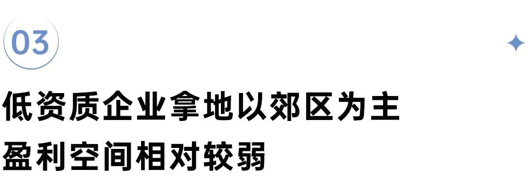 对于一二线城市核心地块,由于总价高、拿地门槛高,三四级资质的房企一般难以获取此类地块,因此更加偏好低总价、竞争强度稍低的地块,区位上也以非核心区域为主。对比来看,平均拿地总价增长也最快。