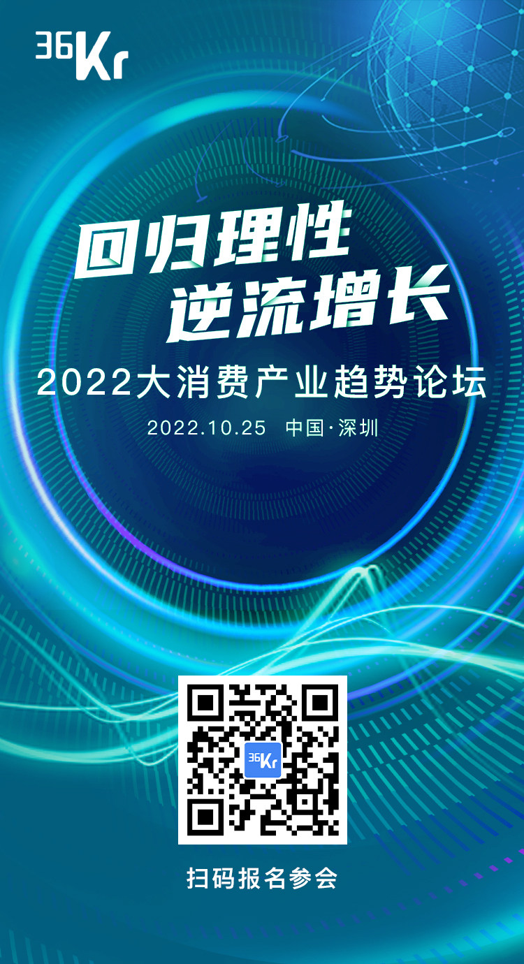 基于此,10月25日,36氪将在深圳举行“回归理性,逆流增长·2022大消费产业趋势论坛”,将关注“回归常识、长期内功修炼”的大消费产业,一同打通产业逻辑,探索行业逆流而上之道。