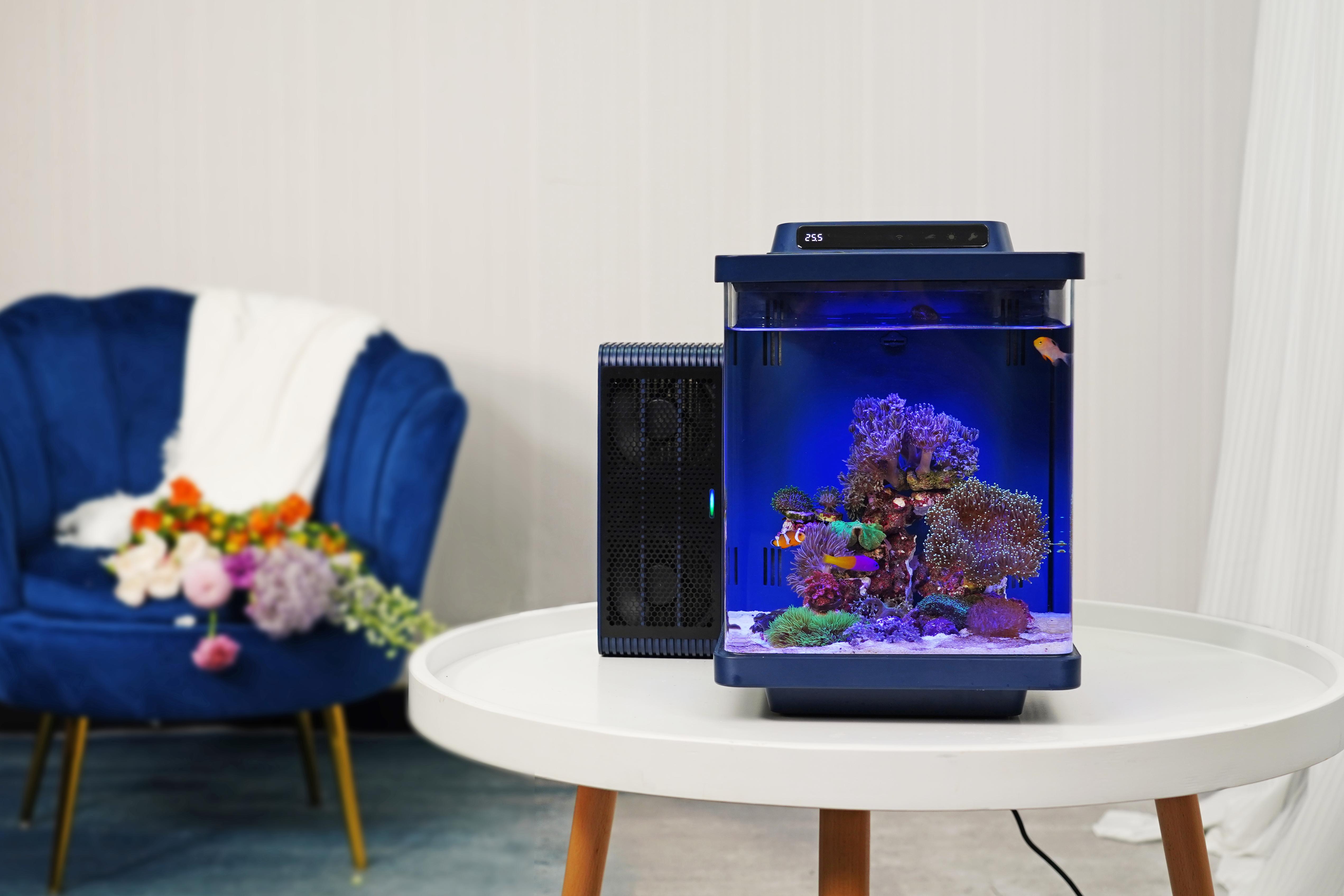 而海享说正筹备推出的新产品智能海缸(微趣系列),主打高性价比,模块化的设计也同时搭载了蛋分和恒温等核心功能。