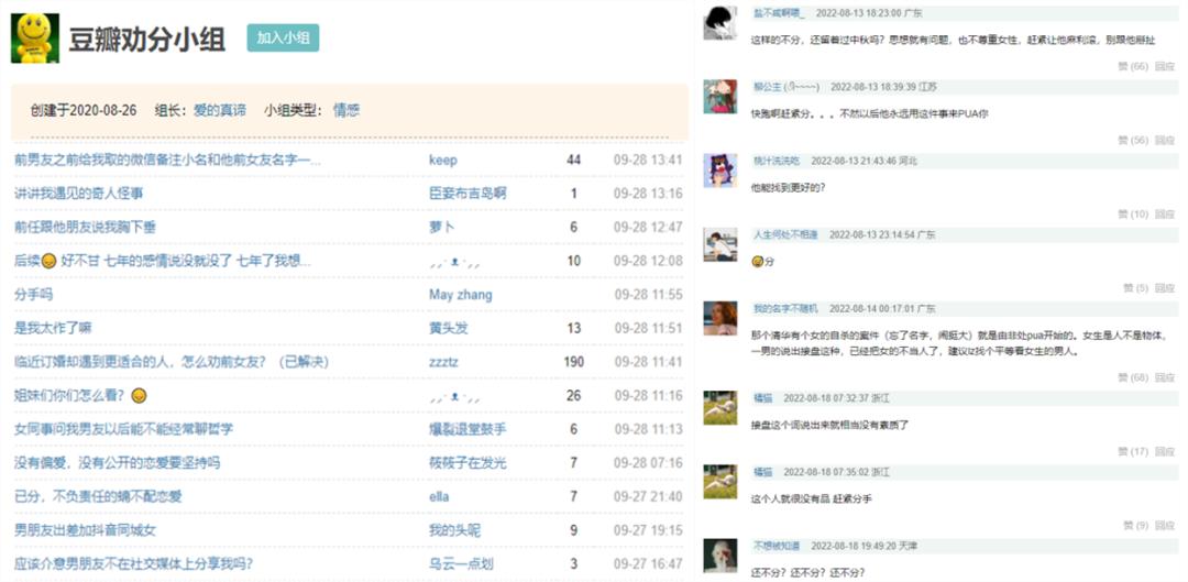 “豆瓣劝分小组”,是全网恋爱脑最密集的地方。