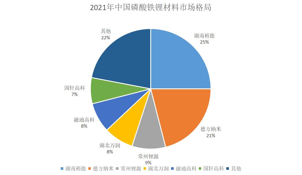 具体来看,湖南裕能、德方纳米牢牢占据市场前2。其中,湖南裕能出货量超过12万吨,2021年市占率达到25%,连续在2020、2021年力压德方纳米,摘得“出货王”的桂冠。