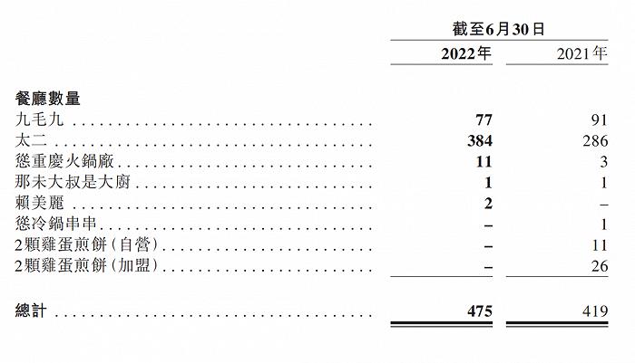 九毛九是一家餐饮集团,旗下拥有多个品牌,其中最有名是太二酸菜鱼,九毛九西北菜、2颗鸡蛋煎饼、怂重庆火锅厂等也是这家餐饮集团的子品牌。总体来说,作为一家餐饮企业,这家公司近两年的发展势头还不错:去年的总营收是41.79亿元,净利润为3.4亿元,截止到今年6月份,总门店共有475家。结合海底捞和呷哺呷哺在疫情期间的表现,这份成绩单算是亮眼。