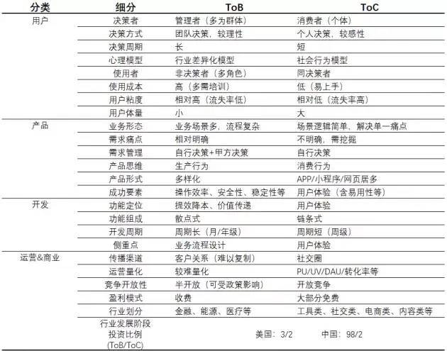 用户层面,toC产品面向用户是个体,toB产品面向的是某一类群体;