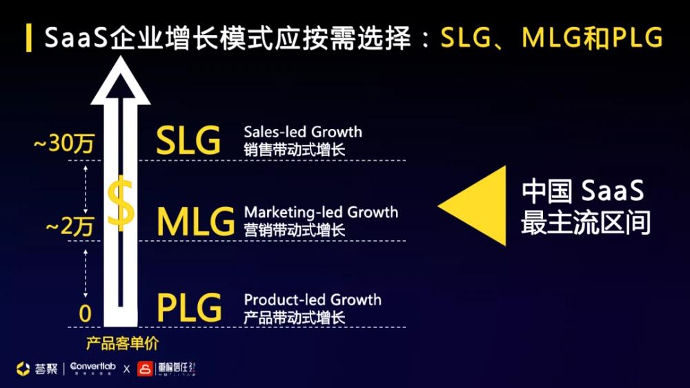 对于30万以上客单价产品的企业,适合SLG(Sales-led Growth)的增长模式,以销售带动企业的增长。