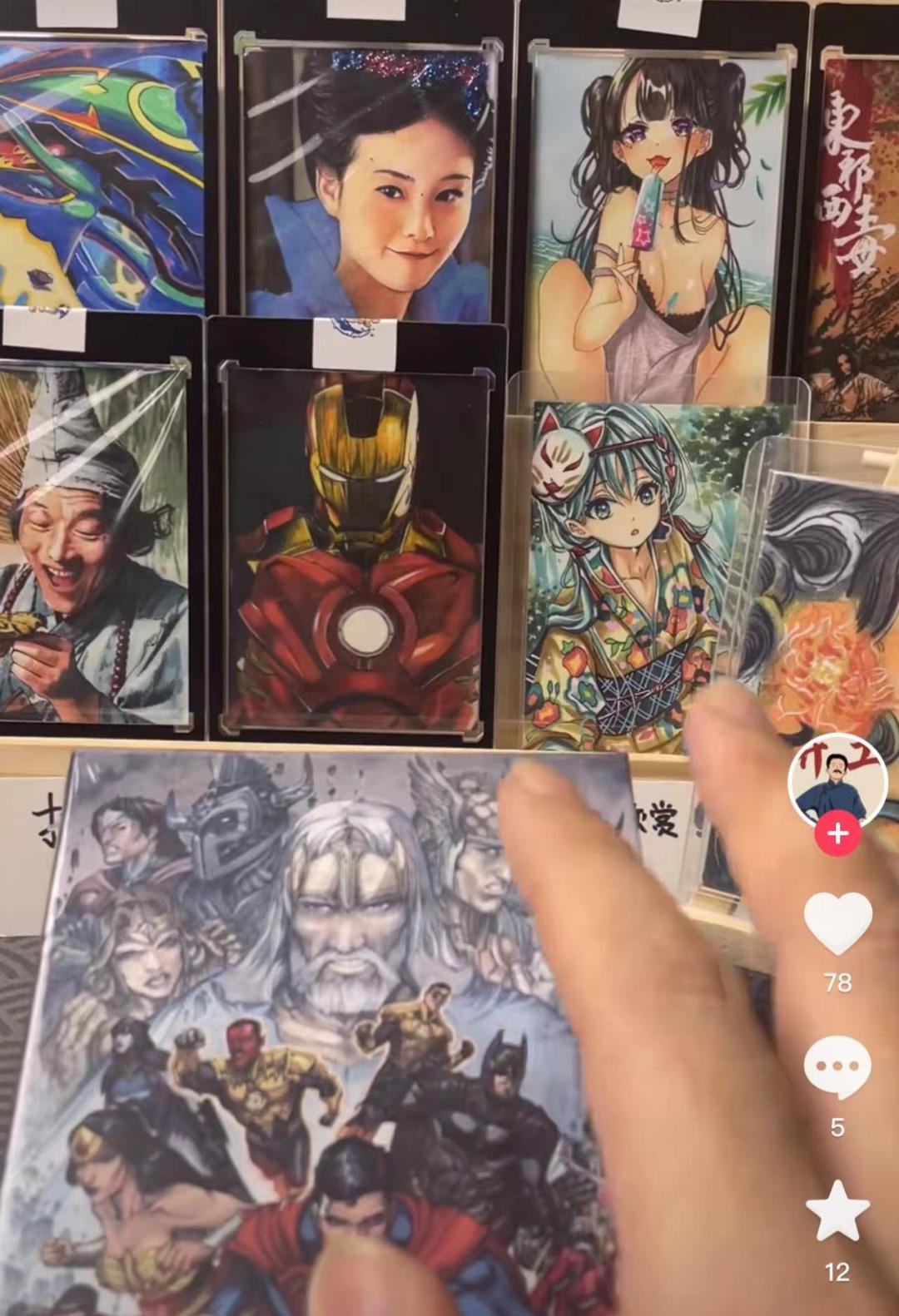 清泉告诉燃次元,不少手绘卡爱好者都会从漫威漫画、DC漫画、宝可梦等主题的手绘卡“入坑”,“在玩手绘卡之前,这些爱好者就有着对某IP文创周边的收集习惯,不少人表示在购入小时候看过的影视剧作的手绘卡时,总会陷入童年的回忆中。”