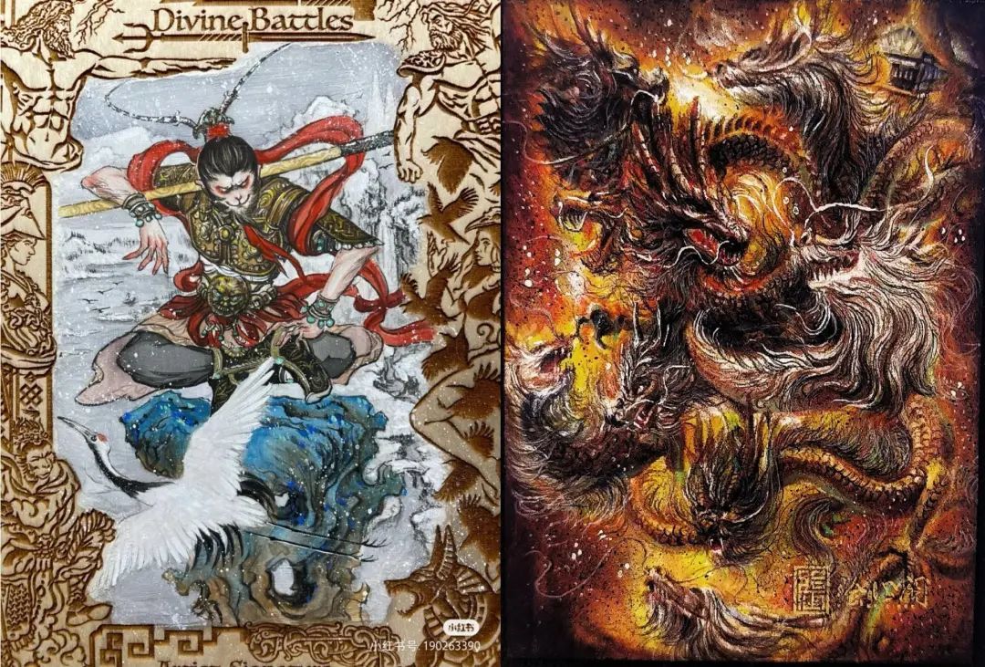 “最多的一次,我在一张卡上画了九条龙。”清泉告诉燃次元,事实上,几年前他就注意到了风靡国外的手绘卡,但彼时国内还相对安静,直到近两年手绘卡在国内走红,自己才开始做兼职画师。