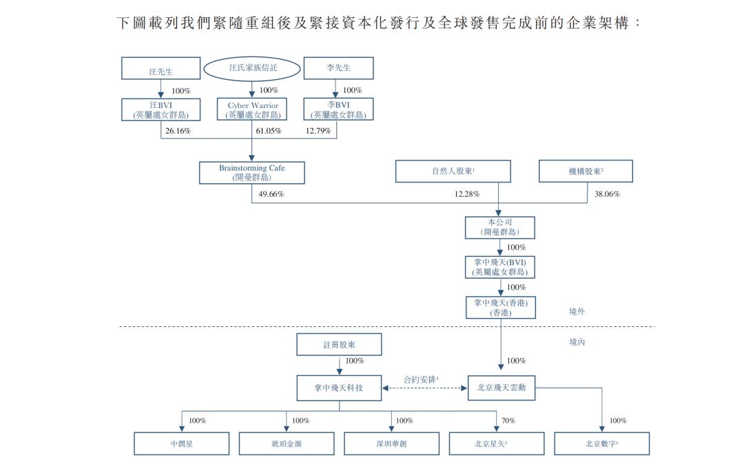 2021年11月,掌中飞天科技经历了一次境内重组,并成立了为掌中飞天(香港)外商独资附属公司北京飞天云动公司,并以此开始闯关港交所。