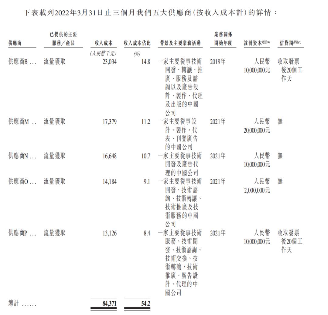另一方面,飞天云动的五大供应商主要来自提供流量的媒体平台代理以及提供分包及开发服务、或提供内容素材或IP的公司。