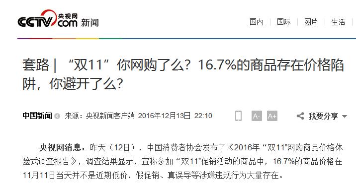 双11“套路”曾被点名,央视新闻报道截图