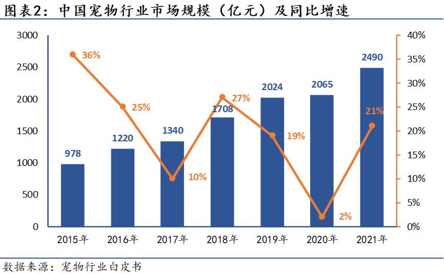 多重因素推动下,宠物行业的市场规模不断扩大。根据历年宠物行业白皮书数据,我国宠物消费市场规模已从2015年的978亿元扩大到2021年的2490亿元,年复合增长率高达16.8%。现如今,宠物行业正高速发展,那么具体的产业现状又是如何呢?
