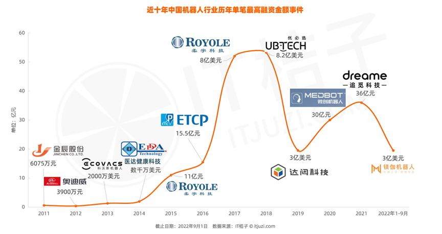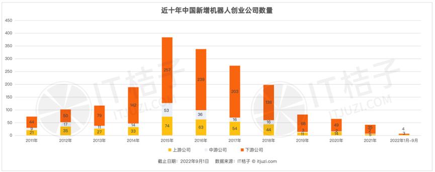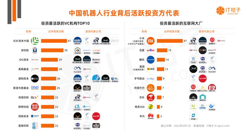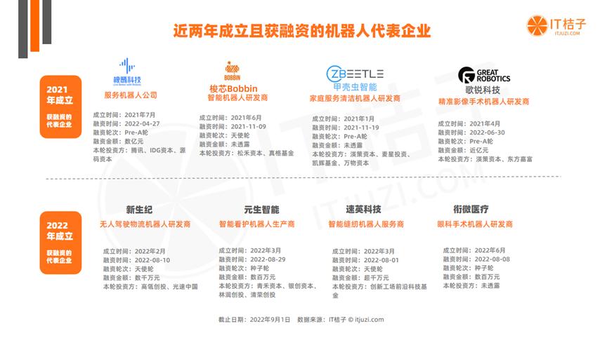 今日,新经济创投数据服务商 IT 桔子发布《2022年中国机器人行业投融资数据分析报告》。
