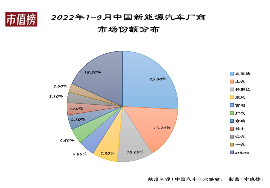 从今年的数据看,1-9月,新能源汽车销量排名前十位的企业集团销量合计为373.1万辆,同比增长1.2倍,占新能源汽车销售总量的81.7%。