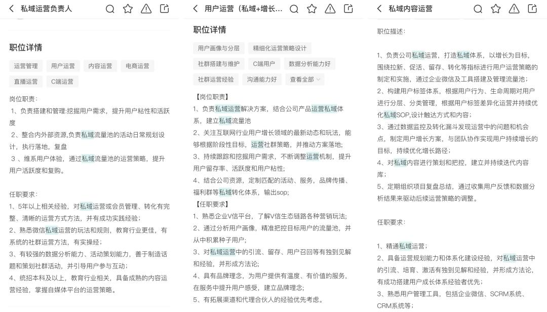 (某招聘平台私域负责人/用户运营/内容运营岗位JD)