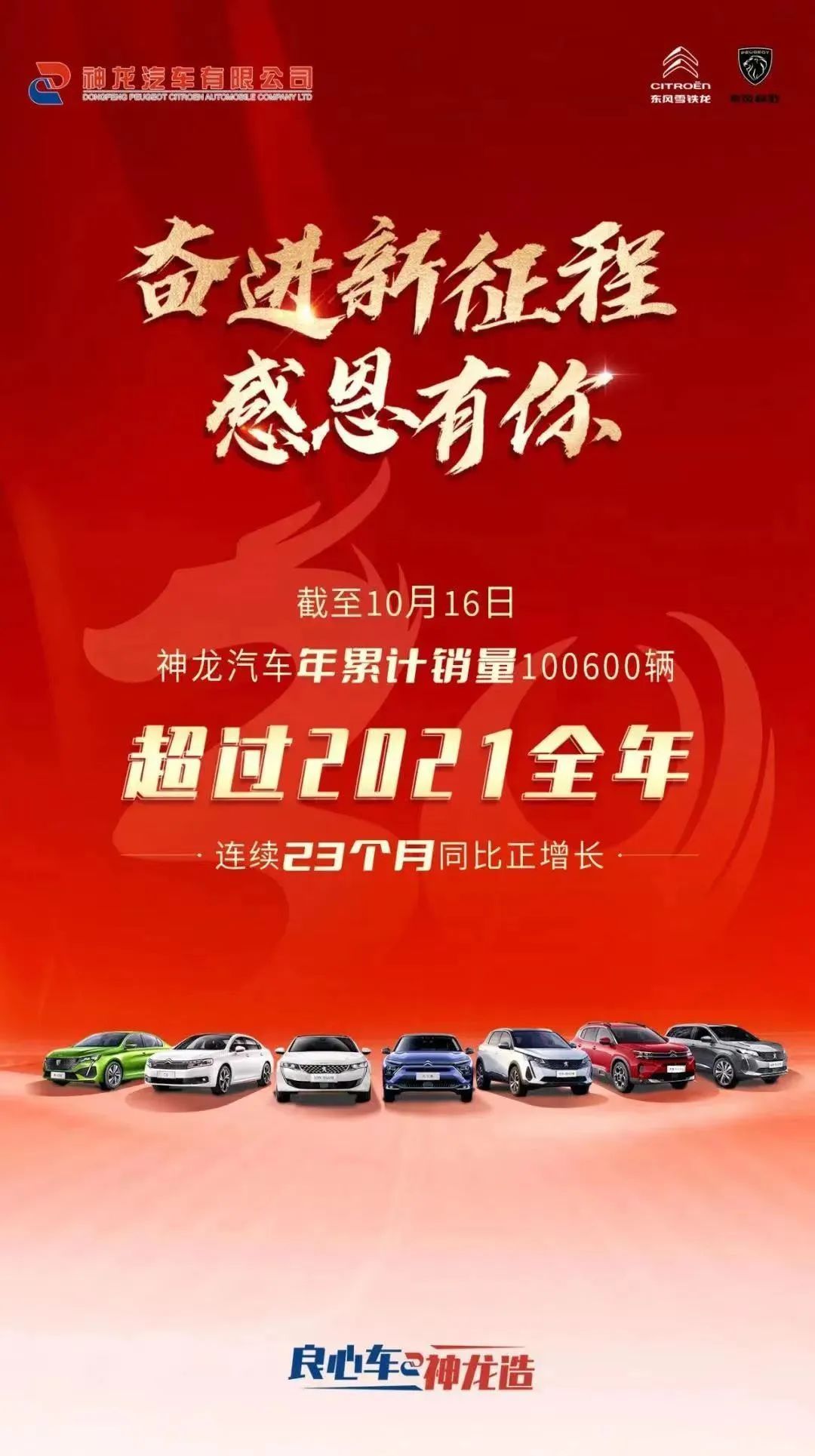 耐人寻味的是,就在10月17日,Stellantis集团在华合资公司——神龙汽车还发布了销量喜报。数据显示,神龙汽车今年来累计销量约10.06万辆,已经超过了2021年全年销量,连续23个月实现同比正增长。