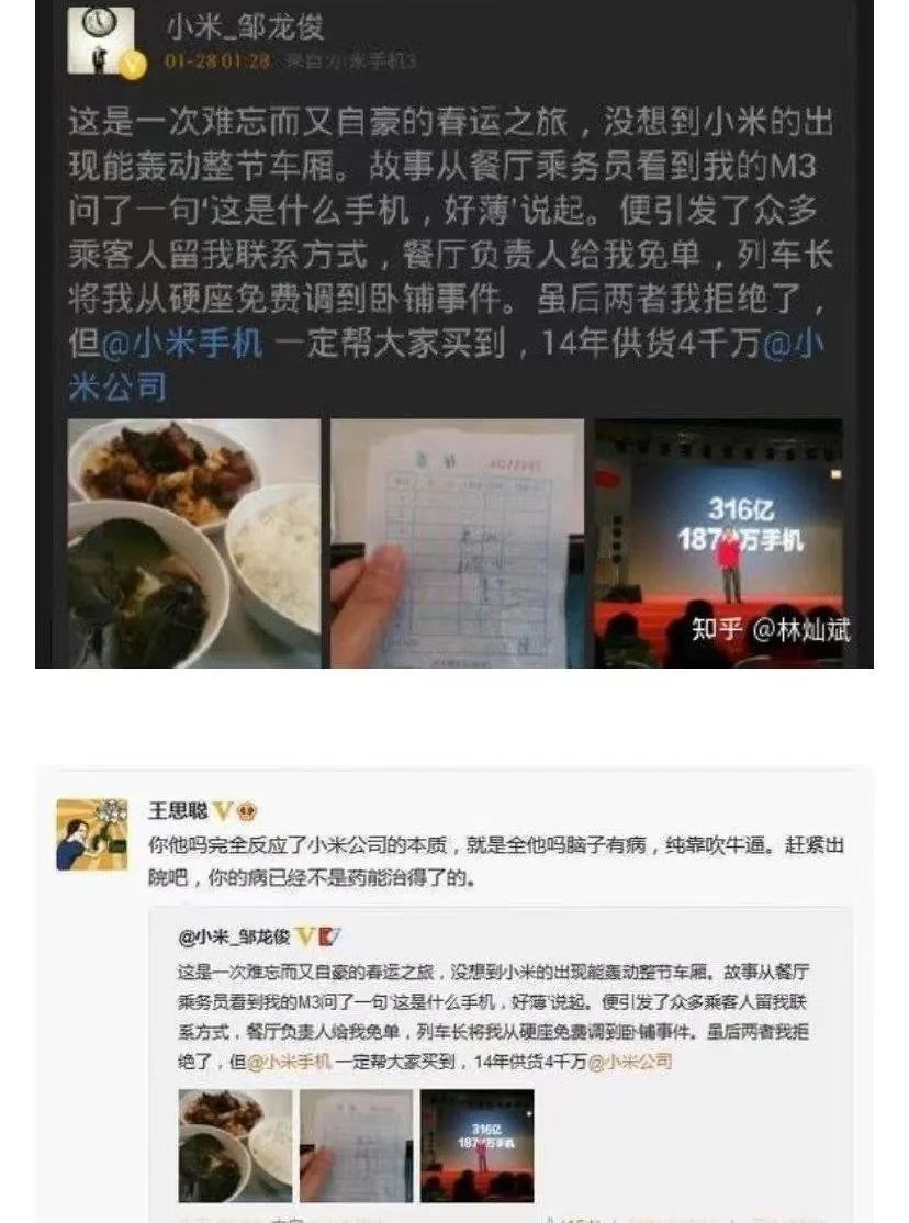 当时某手机品牌员工发了一条微博,大意就是自己凭借自家手机,让餐厅负责人免单,还被免费从硬座升舱到卧铺。