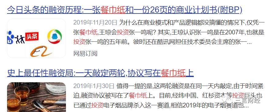 事实上,不少报道用来描述大佬的创业史,也喜欢提到纸巾的梗。比如在纸巾上写上了创业计划拉来投资这种戏码。