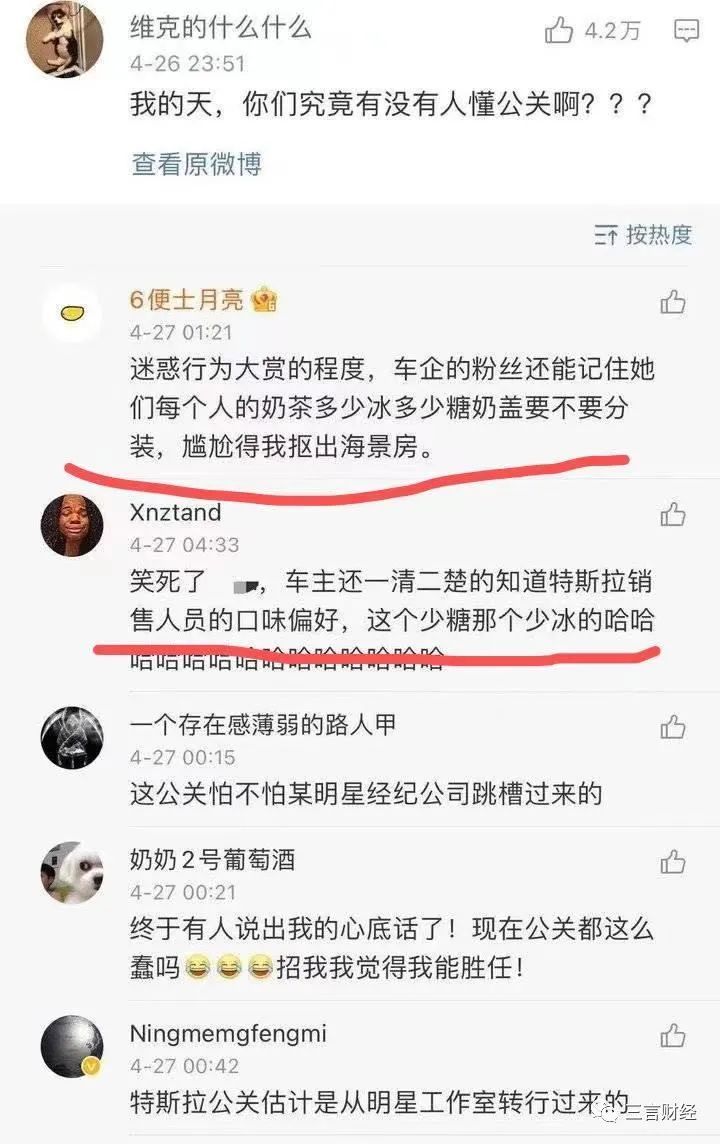 有网友指出,车主还能记住特斯拉人员的冰、糖比例,“尴尬得我抠出海景房”。