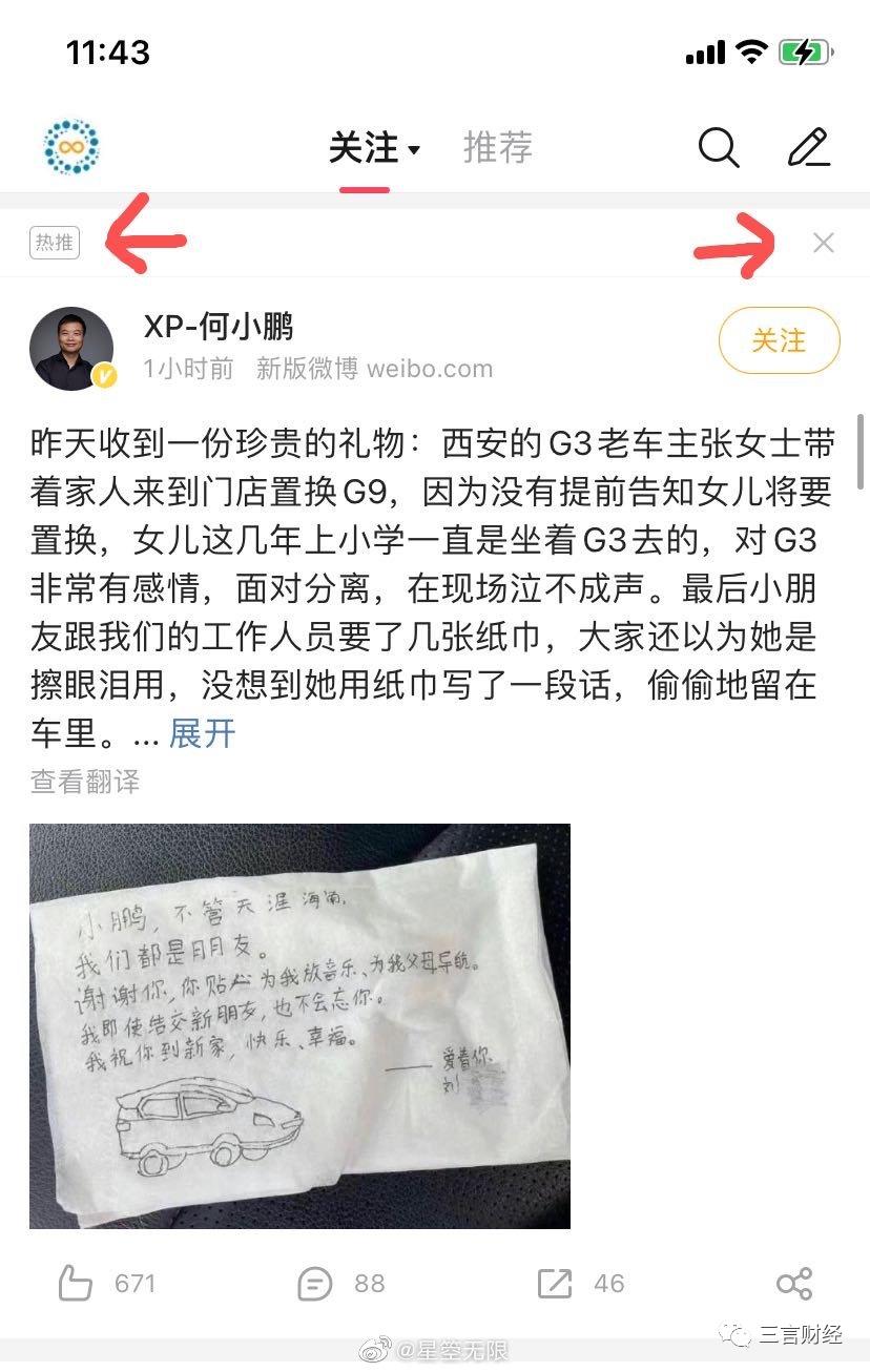 纸条的事情是昨天发生的,何小鹏在今天中午就发了一条长长的微博。有人发现,何小鹏还买了热推。多种迹象都表明,何小鹏对这件事很上心。