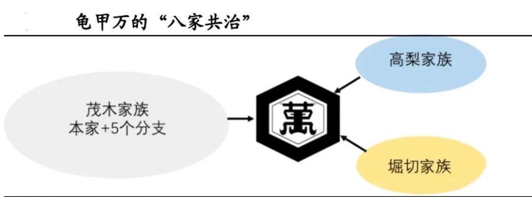 1917 年 ,随着一战爆发,酱油需求加剧以及家族各根系企业内部竞争的恶化,茂木家族、高梨家族、堀切家族的 8 家小企业合并 ,成立野田酱油株式会社( 1964 年改名为龟甲万酱油株式会社),形成 “八家共治”的局面 。