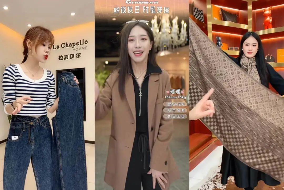 以服饰鞋包行业的直播间为例:在场地背景的设计上,场地以实景搭建或门店背景为主拉进与用户的距离感,同时因为要考虑到展示穿搭,大多直播间会选择对角线来提升空间纵深感;整体视觉会偏暖色调。