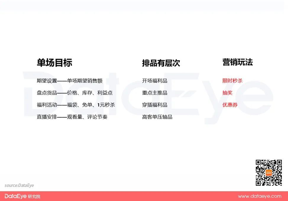 建议基于「开场福利品、重点主推品、穿插福利品、高客单压轴品」的逻辑设置商品推荐顺序,同时主播一定要实时关注在线人数、成交的变化,匹配有赞诸如限时秒杀、抽奖、优惠券等营销玩法想办法留住客户。