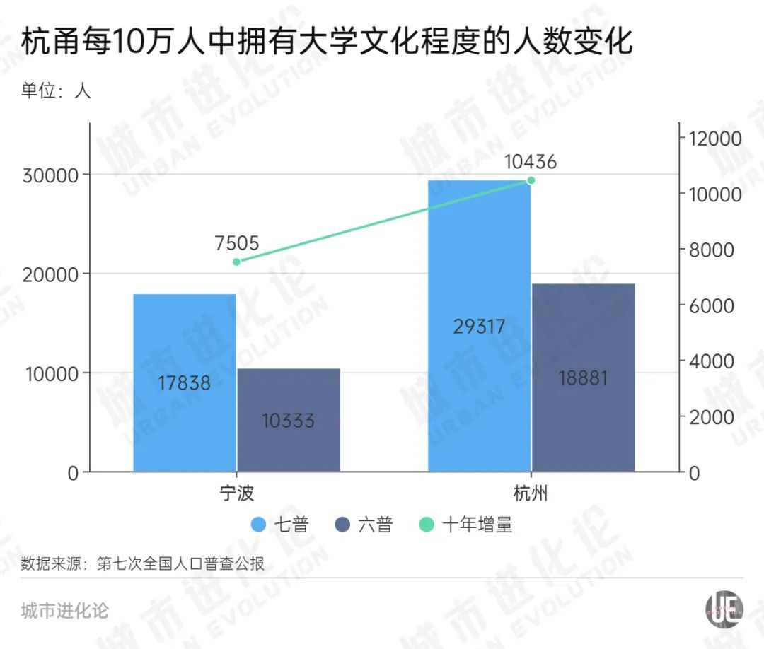 2021年,杭州、宁波常住人口达到1220.4万人、954.4万人,分别增长26.8万人、13.97万人。而这一年,杭州的自然增长率为2.9‰,宁波则近30年来首次落入负增长区间,自然增长率为-0.86‰。
