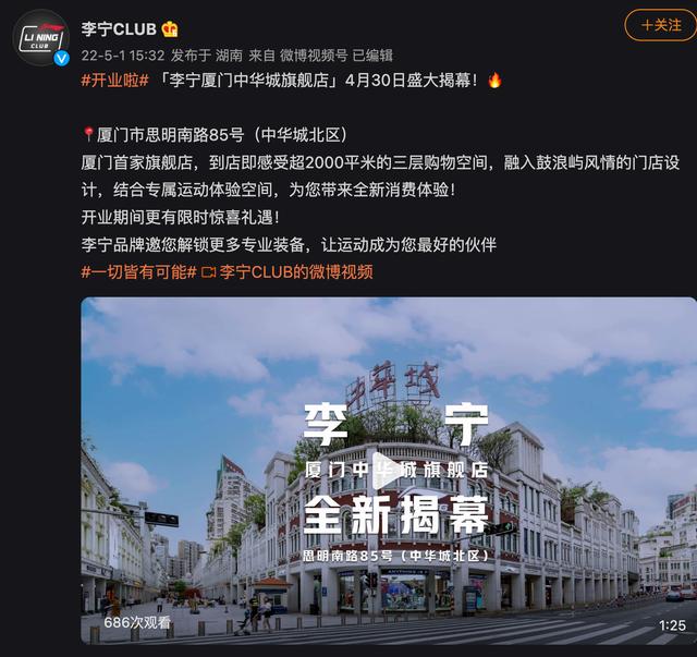 今年4月30日,李宁在厦门的首家旗舰店“李宁厦门中华城旗舰店”上线,宣传视频中出现了“宁咖啡”的招牌,有网友甚至开始畅想未来在李宁5700多家线下店铺喝咖啡的场景。
