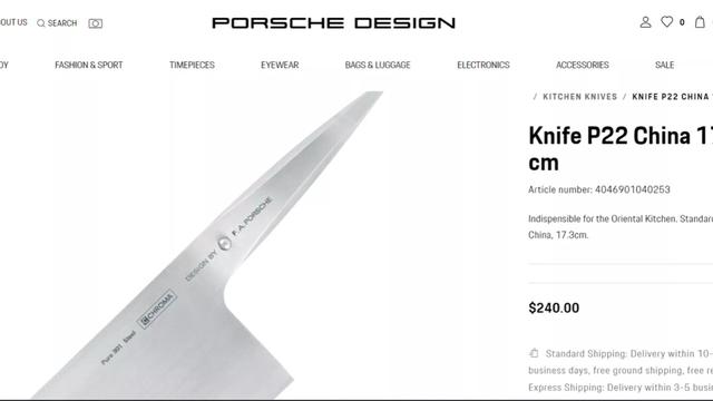 就在马斯克为他的香水带货的时候,保时捷在官网上线了一款名为“P22中国刀”的中式菜刀,售价240美元。保时捷称其为“东方厨房不可或缺。来自中国的标准”,并表示“可以拍蒜”。