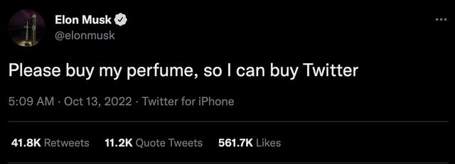 难道马斯克又要将“魔爪”伸向香水界,像改变汽车行业那样改变香水行业?好在马斯克随后发推表示,亲自下场带货卖香水只是为了买下推特。