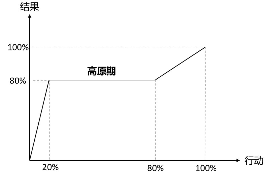 中间60%的行动,结果一直不变 ,一直停留在80%的阶段,这个阶段我们称之为高原期。