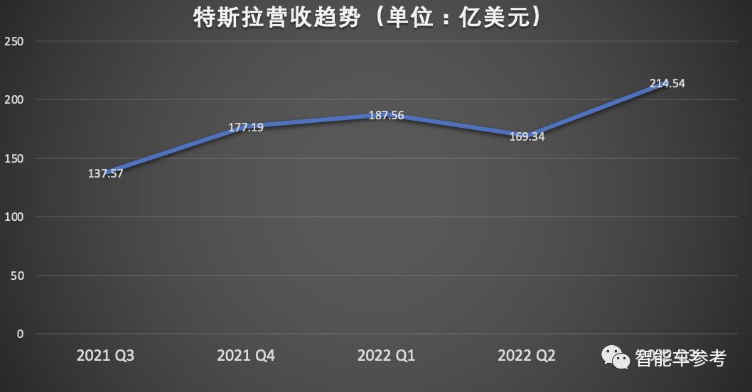 2022年Q3,特斯拉实现营收214.54亿美元,合人民币1552亿左右。