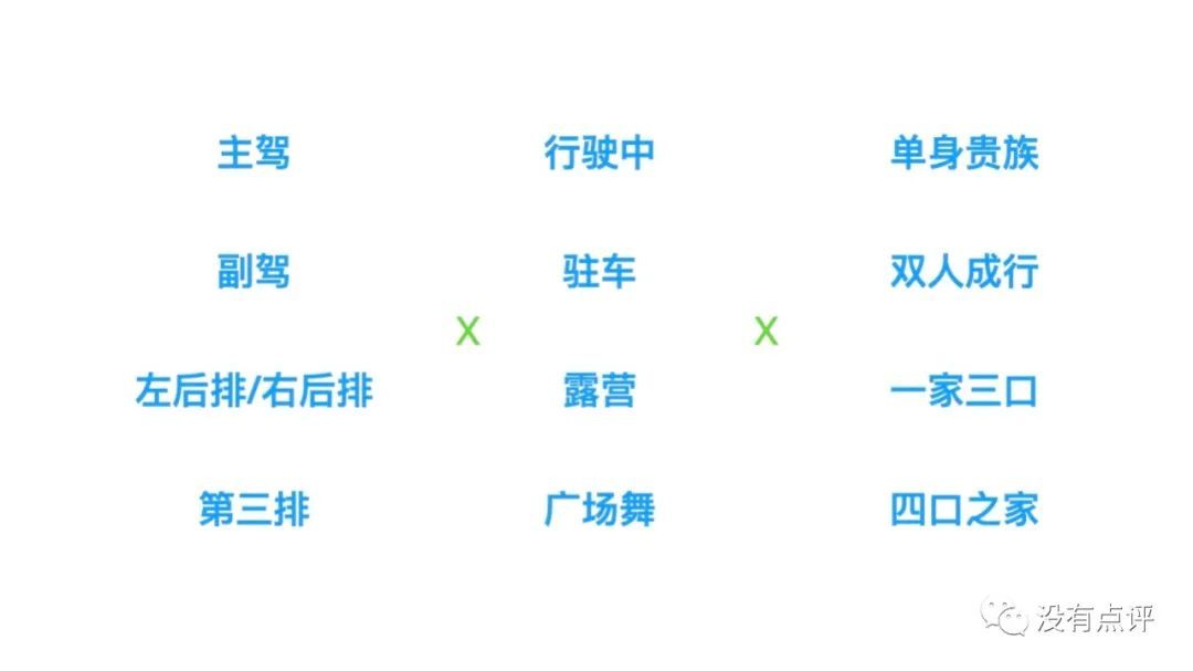 2 “彩电、冰箱、大沙发,女王副驾配美妆,宝宝座椅小桌板,满足不同人的需求”