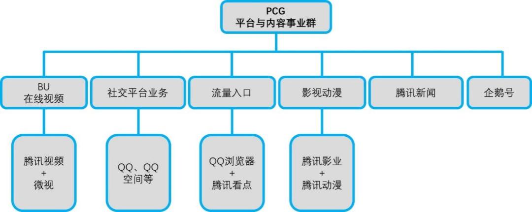 企业发展事业群(CDG)、互动娱乐事业群(IEG)、技术工程事业群(TEG)、微信事业群(WXG),这四个事业群保留。其他所有的ToC业务,包括社交、信息流、长短视频、动漫影业、新闻资讯,从原有的事业群中剥离,重新打包成一个新的事业群——平台与内容事业群(PCG)。